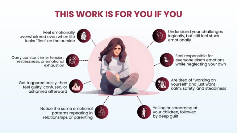 You learn how to stay grounded during triggers, respond instead of react, and carry calm into daily life.